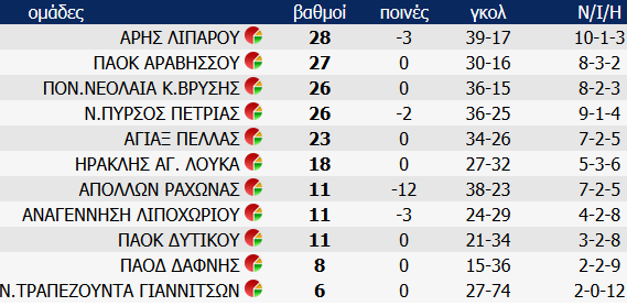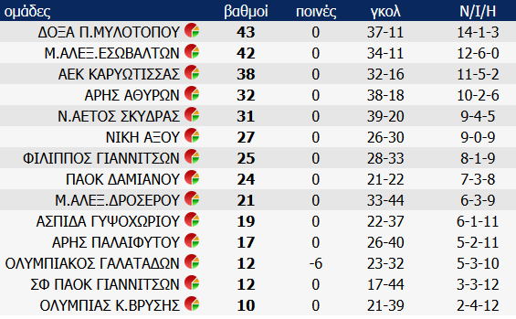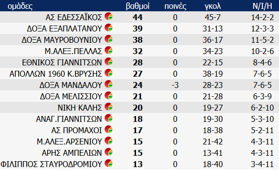 Δείτε τις βαθμολογίες της ΕΠΣ Πέλλας, μετά τους αγώνες πρωταθλήματος του Σαββατοκύριακου 11 και 12 Μαρτίου 2017:
