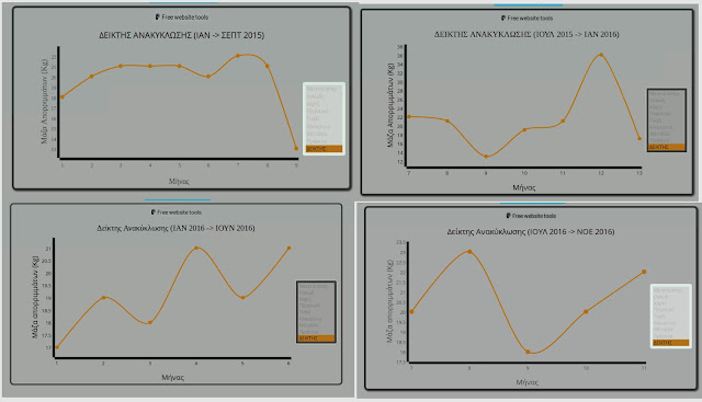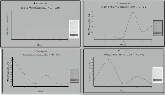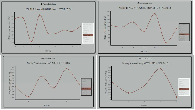 Ο χειρότερος δείκτης που πιάσαμε ήταν τον Δεκέμβρη του 2015 (Δείκτης:36.. Που σημαίνει για κάθε κιλό ανακυκλώσιμου, στείλαμε 36 κιλά για θάψιμο). Ελπίζουμε να μην επαναληφθεί το ίδιο τον φετινό Δεκέμβρη.