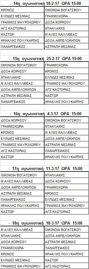 Το αναλυτικό πρόγραμμα αγώνων του 2ου Γύρου της Α’ Κατηγορίας