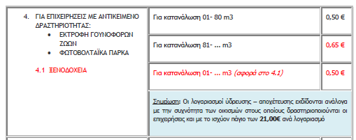 * Το ήξερες οικογενειάρχη, ότι ένα ξενοδοχείο πληρώνει μόνο 0,05 λεπτά περισσότερο ανα m3 σε σχέση με σένα, αλλά η τιμή του είναι σταθερή, ακόμα κι αν ξεπεράσει τα 61 m3, ενώ εσύ τα χρεώνεσαι με 0,65€ αν τολμήσεις και ξεφύγεις σε κατανάλωση και υπερβείς αυτό το όριο των τα 61 m3;
